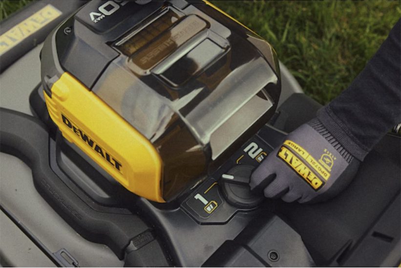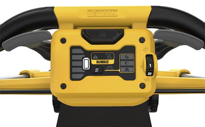 The mower comes with two removable DeWalt FLEXVOLT battery packs that deliver a total of up to 85 minutes of runtime. DeWalt has cleverly designed the swapping system for maximum flexibility. You can run the mower with either one or both batteries installed. To get through a medium-large lawn quickly, install both batteries, and when one becomes depleted, simply flip a switch to change to the other one. If you need even more runtime, install one battery, and run the mower while the other one charges.