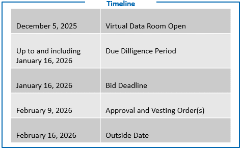 Interested parties should contact the Receiver with respect to signing an NDA and/or access to the Data Room and should not contact employees and management of the Debtors directly.